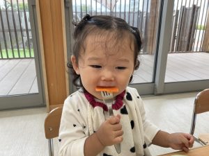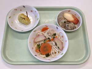 うどんに入っていたにんじんやかまぼこを気に入って食べていました。