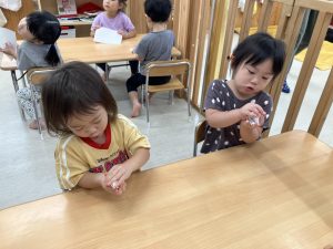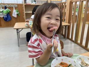 お月見のお話を聞き、今日の献立が特別メニューということで子どもたちはワクワク😊