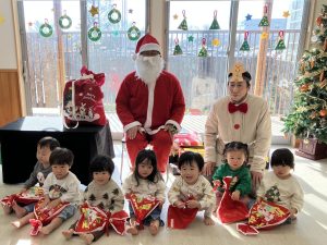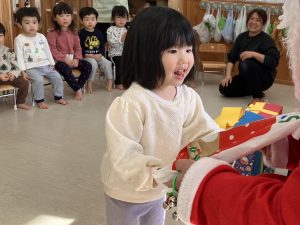 その後、順番に名前を呼ばれて、サンタさんより直接もらうことができました。