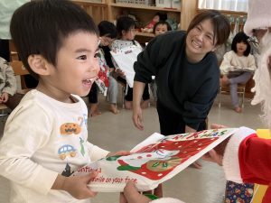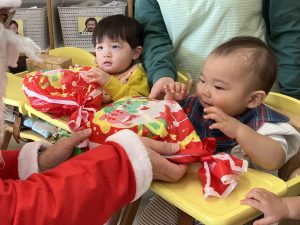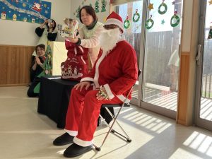その後、順番に名前を呼ばれて、サンタさんより直接もらうことができました。