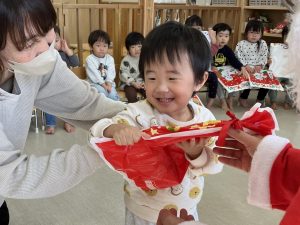 ぶどう組のお友だちにはプレゼントを運ぶお手伝いをしてもらいました。
