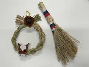 残った藁で、お正月のしめ飾りやほうきを作りました✨