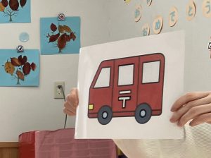 赤色ちゃんは郵便車に変身しちゃったね😲